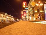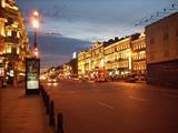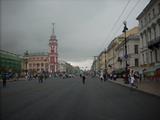 In Nähe des Moskauer Bahnhofs in Petersburg herrscht auf dem Newski-Prospekt noch normaler Verkehr.