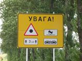 Vor gefährlicher Strecke wird gewarnt (wobei das überschreibende Wort eher aus dem Polnischen als aus dem Russischen bekannt ist).