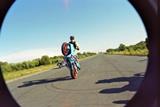 und seitdem brachliegt (OK, eine frische Schicht Asphalt scheint mal draufgekommen zu sein) - und die jetzt als Übungsgelände für Motorrad-Akrobaten dient.