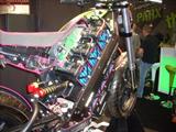 Diese S1000RR(?) hat von Conti nicht nur Stollenreifen verpaßt bekommen, sondern auch allerhand markige Sprüche.