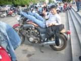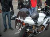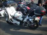 Die Teilnehmer des Motorradtreffens versammeln sich im Stadtzentrum.